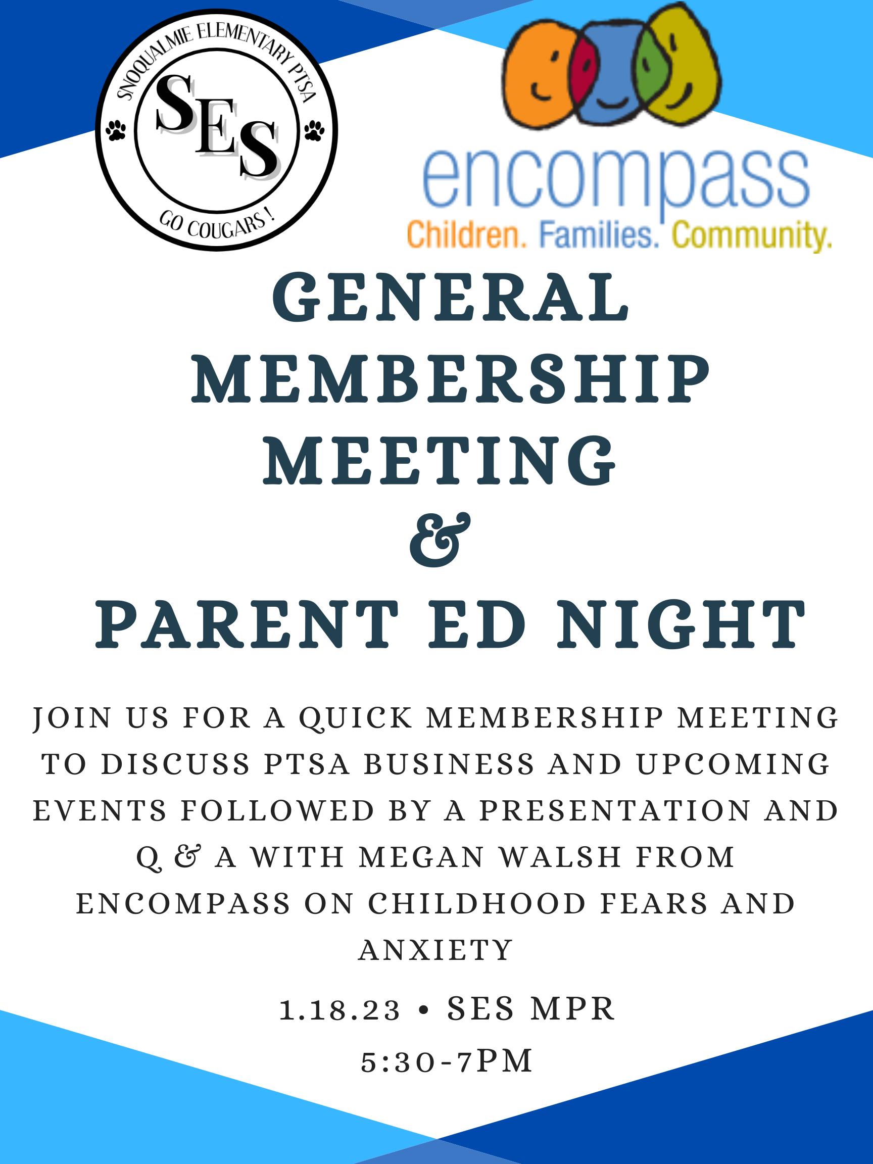 Home Events - Snoqualmie Elementary PTSA General Membership Meeting/Parent Education Night