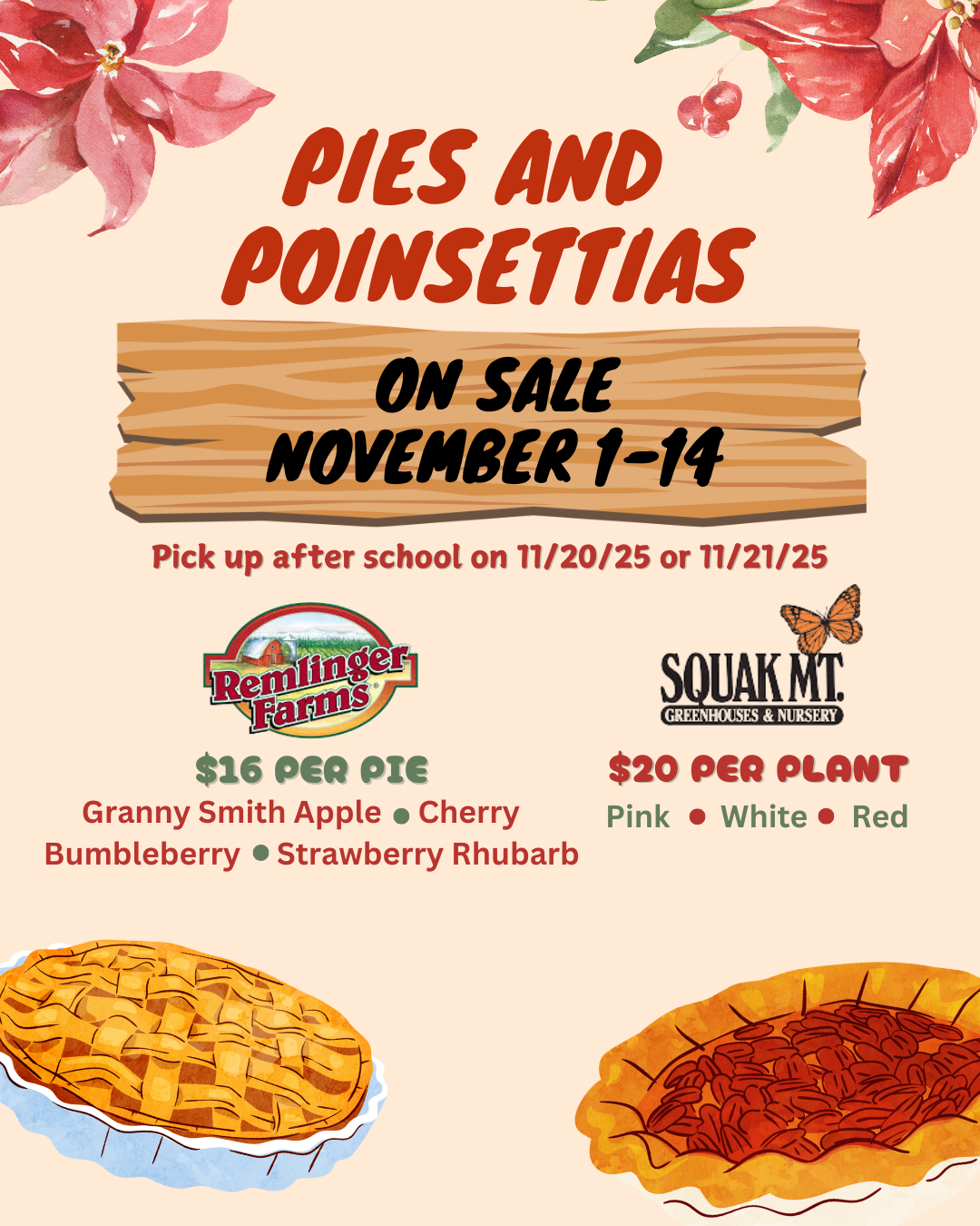 Home Events - Snoqualmie Elementary PTSA Pies and Poinsettia Sale Starts Pies and Poinsettia Sale Starts + Add to Google Calendar + iCal / Outlook export 00 days 00 hours 00 minutes 00 seconds Search Recent Posts April Newsletter March Newsletter January-February Newsletter Recent Comments April Newsletter April 18, 2023 March Newsletter March 9, 2023 January-February Newsletter March 4, 2023 Categories Newsletters Archives April 2023 March 2023
